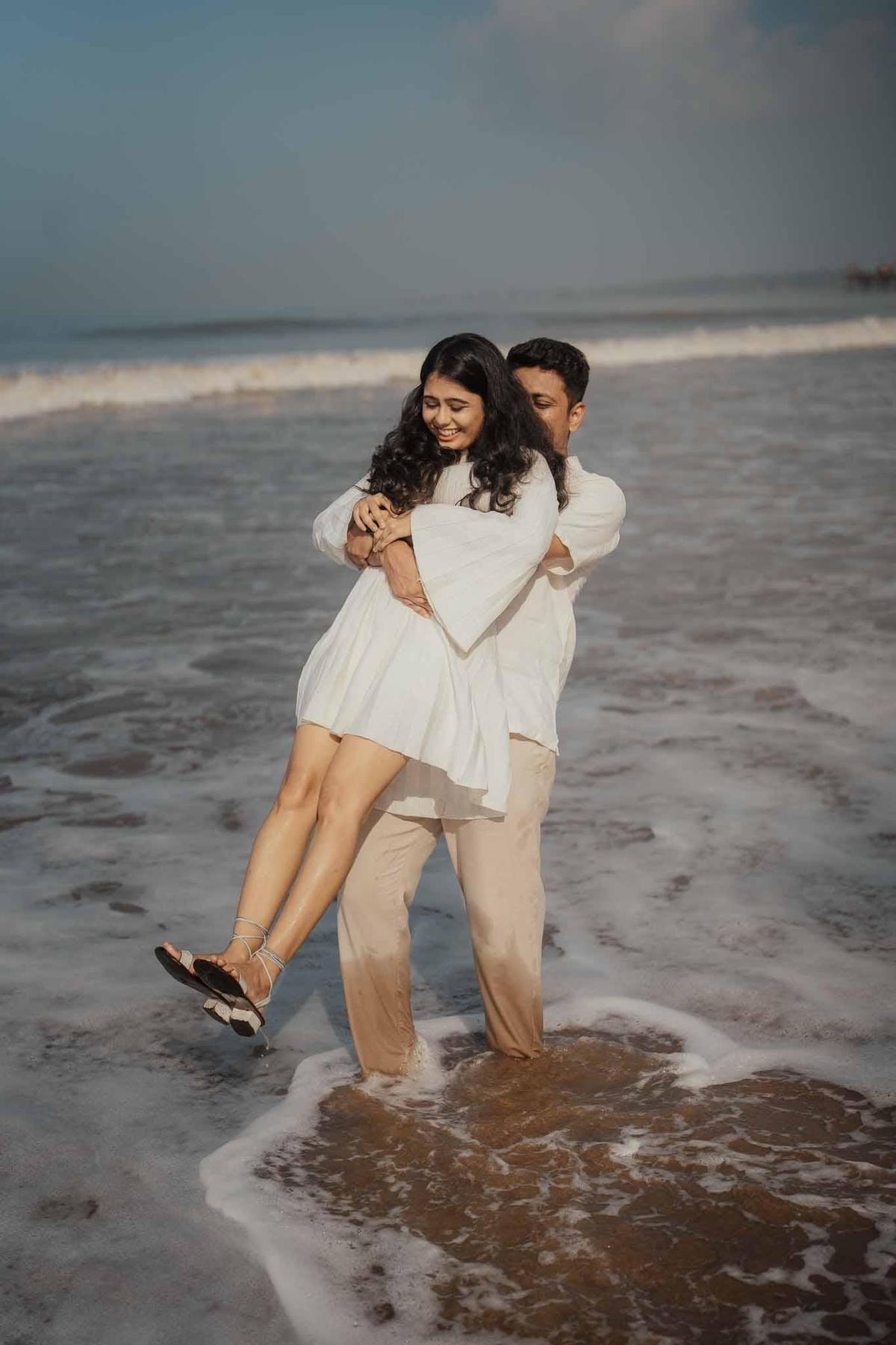 A couple photoshoot focuses on capturing love and connection in natural settings — it can be done anytime. A pre-wedding shoot, however, is usually themed and planned before the wedding with cinematic storytelling and outfits.